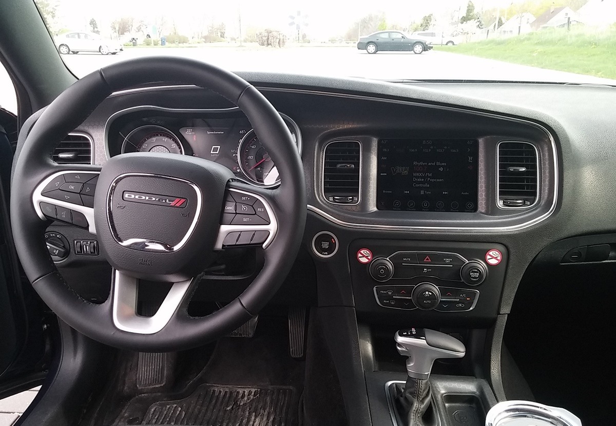 Iako Charger možda deluje kao tenk, preglednost u toku vožnje je izuzetno dobra. On ima mali „mrtvi ugao“ kao i svaki drugi automobil sa niskim krovom, ali je i više nego dobar povodom ove karakteristike kada se pogleda koliko su njegovi prozori niski. Nažalost, ne mogu da donesem isti zaključak po pitanju načina korišćenja samog enterijera. Neke komande (kao što je traženje radio stanica i klima) su pomerene previše na suvozačevu stranu pa samim tim nisu baš praktični za korišćenje tokom vožnje. Poveći monitor je zamenio značajno manji prethodni, a on je ujedno jedina veća promena za 2017. godinu.