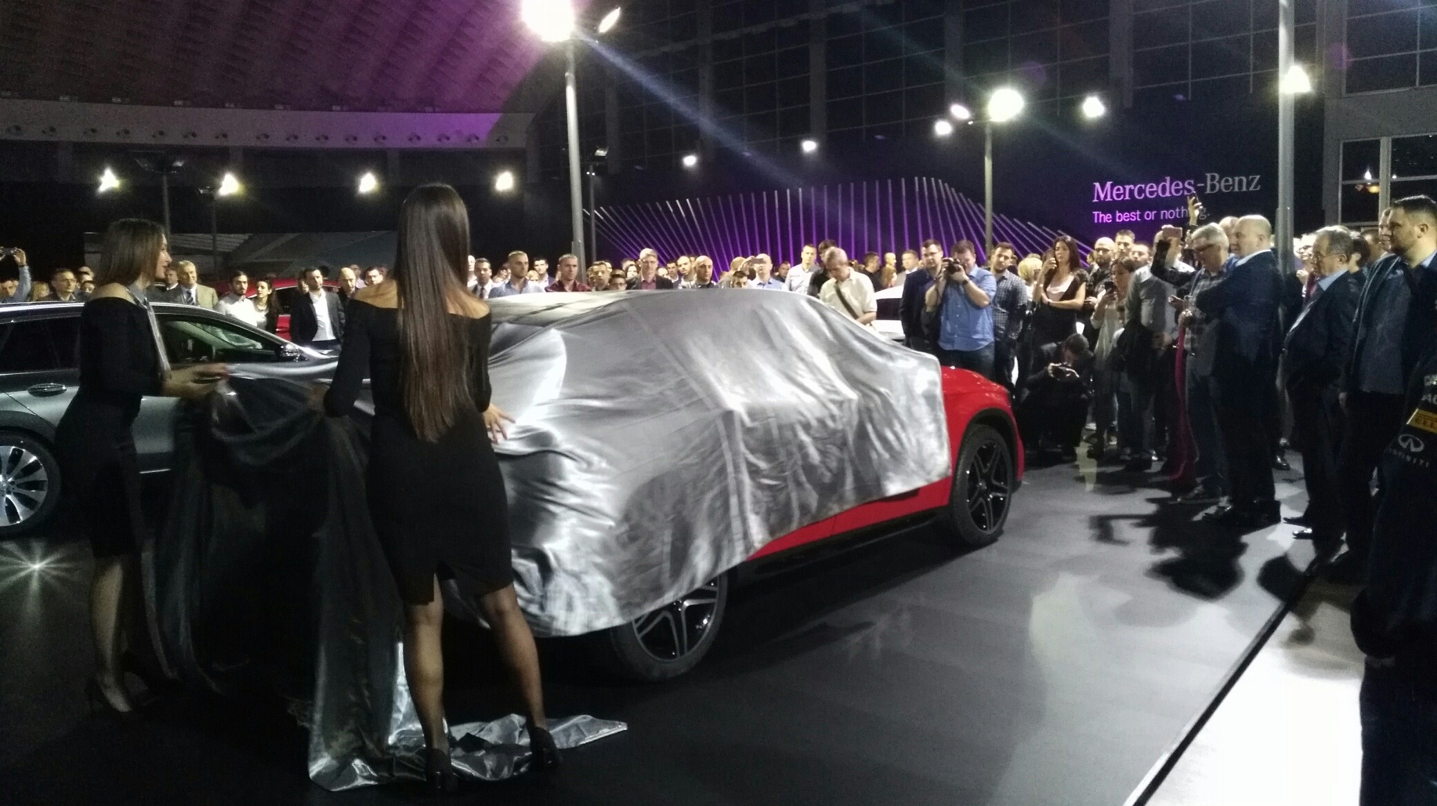 Poput ove tri grupe učesnika, tri vrlo ozbiljna tipa su nas sinoć dočekala ispred hale 3 Beogradskog sajma (limuzina i kupe S klase, kao i E klasa). I da smo ostali ispred hale, veče je imalo svoju svrhu.