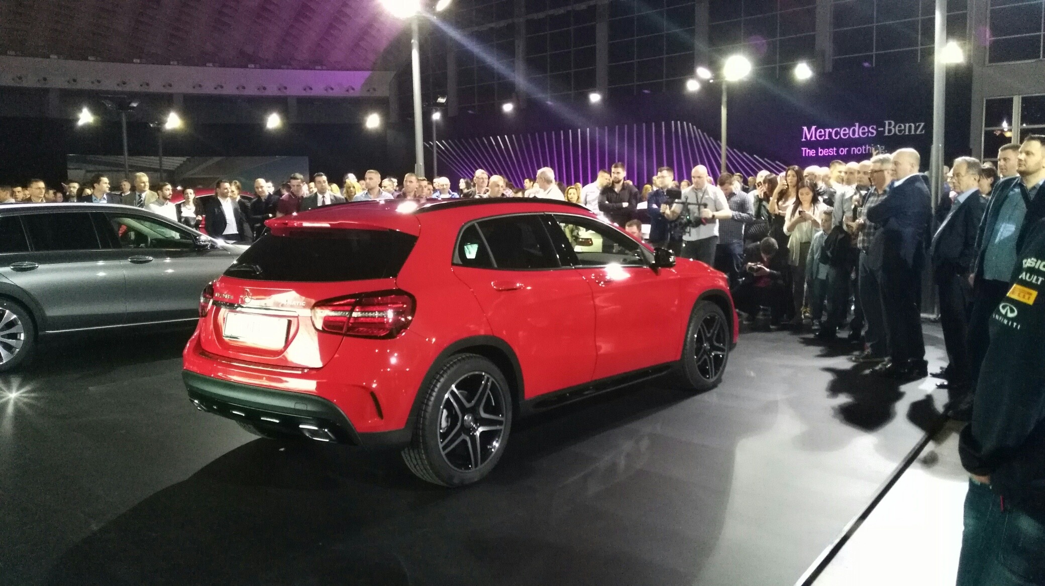 Od beogradskih premijera, videli smo atraktivan „floor work“ performans devojčurka u „disko kugla“ kombinezonu, kao i E klasu all-terrain, GLA i E klasu kupe. Još jedna prepoznatljiva i inspirativna trojka. Oči se teško odvajaju od E kupea!