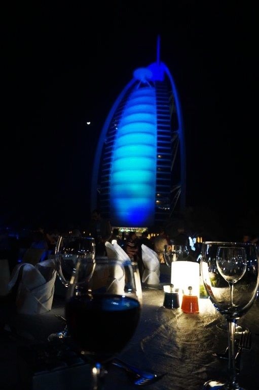 Veče smo proveli u potpuno neformalnoj atmosferi na plaži hotela uz Bourge Al Arab. Onako po noći, osvetljen različitim bojama, delovao mi je (ne pomislite da sam lud ili bahat, molim vas) bukvalno kao silos na autoputu Beograd – Niš, onaj pšenični silos u Ražanjskom mlinu.