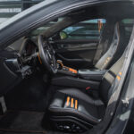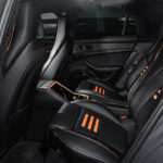 Po želji, Techart može da modifikuje i enterijer Panamera. Za ovu konkretno su eksploatisani narandžasti akcenti, koji su boju kočionih čeljusti doneli u kabinski prostor. Nov je i volan, nešto manjih dimenzija u odnosu na standardni.