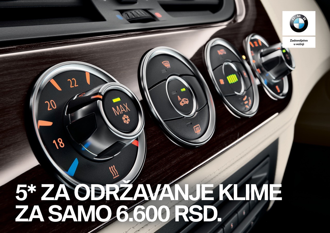 U okviru letnje akcije BMW Servis 6+ nudi i kompletnu pripremu za pojačano korišćenje klima uređaja u letnjim mesecima po ceni od 6,600 dinara, koje podrazumeva sledeće: