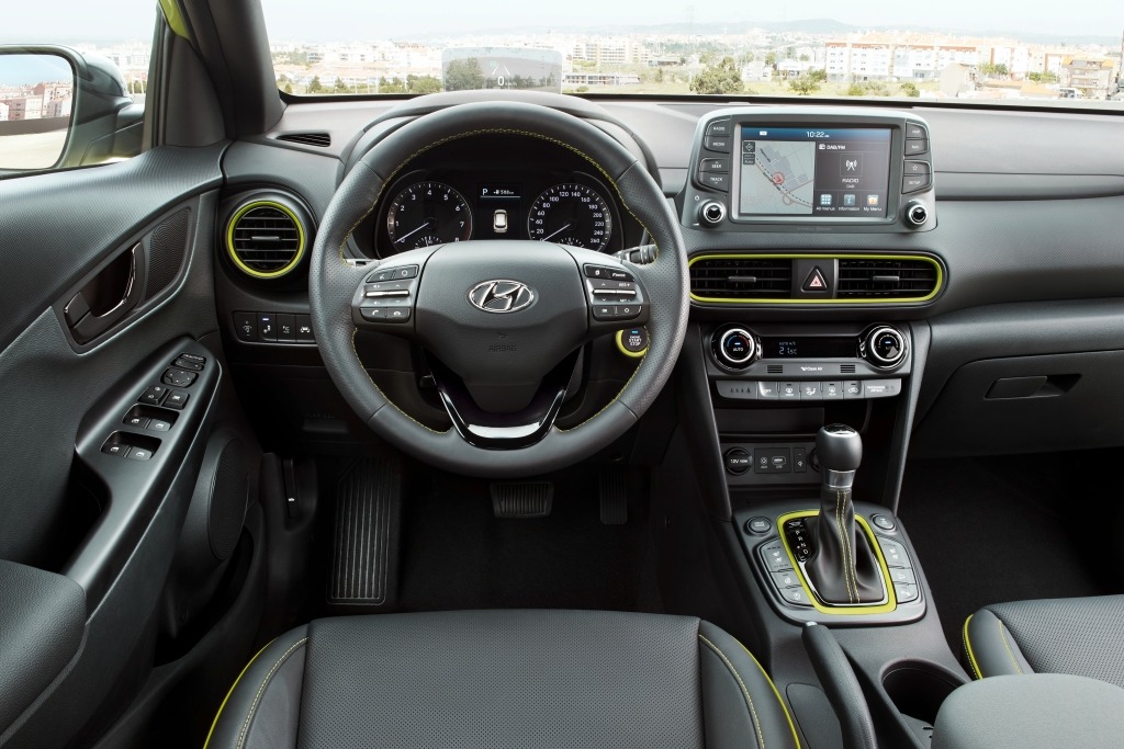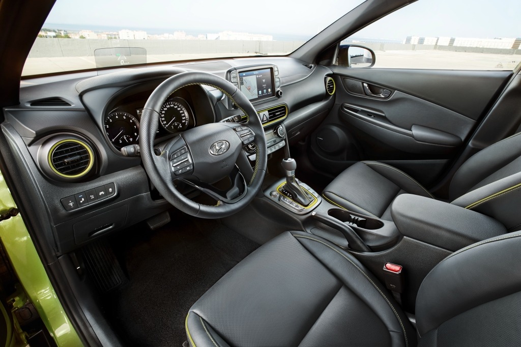 Enterijer je u velikoj meri jednostavan, pregledan i lagan za korišćenje. Hyundai tvrdi da njegov predstavnik pruža najviše prostora u klasi i da je dovoljno komotan za vozača i još četiri putnika. Dužina vozila iznosi 4.165 milimetara, uz širinu od 1.800 i visinu od 1.550 milimetara. Bez obzira za koju verziju se odlučili, Kona je bogato opremljen automobil.