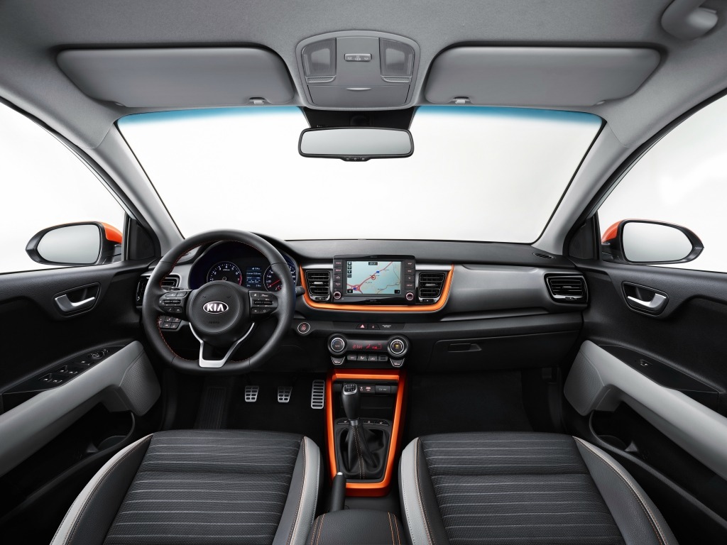 Slično kao i kod vanjskog dizajna, i enterijer je urađen u sportskom duhu i sa širokom listom standardne i opcione opreme. Prostora ima dovoljno za vozača i još četiri putnika dok su sve komande jednostavne i pregledne. Sudeći po dimenzijama, Stonic zauzima sredinu klase, pa je tako veći nego Nissan Juke i Renault Captur, ali opet manji nego Peugeot 2008 i Fiat 500X. Gepek donosi 352 litre prostora, što je solidan broj za klasu, ali ne i najbolji. Svi modeli stižu sa 7-inčnim monitorom sa TomTom navigacijom i dosta priključaka za vaš mobilni telefon. Jedna zanimljivost na račun enterijera leži u podatku da se vozačevo sedište nalazi dosta niže u poređenju sa tradicionalnim krosoverima, zbog čega je Stonic idealan za gradsku vožnju, ali ne i za duže relacije.