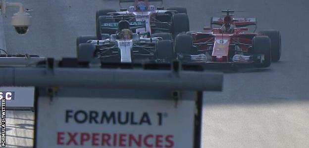 Sudar između dva šampiona je usledio pred drugi restart na trci u Bakuu. Fetel je bio iziritiran Hamiltonovim naglim usporavanjem. Nemac je postavio Ferrari tik uz Mercedes i „ćušnuo“ ga točak o točak.