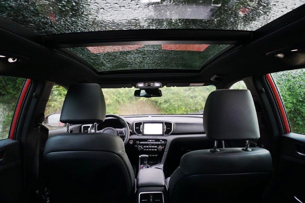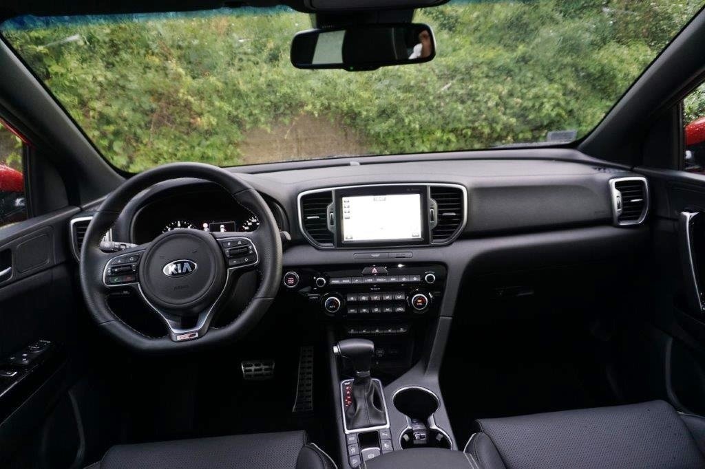 Povećanje od 3 centimetra međuosovinskog rastojanja se teško primeti, gledano izvana, dok je unutrašnjost Sportagea i u prethodnoj generaciji bila vanserijska u pogledu zapremine i ukupne upotrebljivosti (i najbolja, odnosno jedna od retkih dobrih osobina). Kvalitet ugrađenih materijala je značajno bolji u odnosu na prethodnu generaciju. Dok je ovo Tucsonu nedostatak, kod Sportagea bi lako moglo da se nametne kao adut. Završna obrada je na sasvim solidnom nivou i tu je pomak najmanji u odnosu na nasleđenu verziju. Kakva čuda su načinili GT-Line dodaci na eksterijeru, slična čuda čine i u kabini. Efektno, s donje strane sputani odnosno zasečeni volan, perforirana koža, kako na njemu tako i na sedištima, i puno detalja koji imitiraju kvalitet i plemenitije materijale. Znatno, zaista znatno bolje nego ranije.