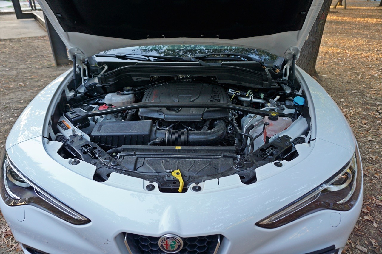 Ako ste pomislili, naravno u saglasju sa predrasudama, da je Stelviju najjača strana upravo ono što oko vidi, onda mnogo grešite. Ovaj Alfa Romeo je napravljen da zadovolji prevashodno čulo sluha i srce. Savršeni sklad u bračnom trouglu: motor-menjač-oslanjanje. Agregat je biser današnje tehnologije: 280 ks uz 400 Nm na 2.250 obrtaja; 8-stepena ZF transmisija (ako vam zvuči poznato, BMW je smatra dovoljno dobrom za svoje vozačke mašine); i oslanjanje u kombinaciji dvostruka ramena/multilink (ali je ovde izrada od aluminijuma). Od aluminijuma su izrađena i: vrata, blatobrani, poklopac agregata, kočione čeljusti i sam motor. Sve ovo i dovodi do ekstremne torzione čvrstine karoserije, veoma skromne mase Stelvija (1.635 kilograma), kao i do idealnog rasporeda težine po osovinama. Šta ovo znači u vožnji?