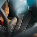 Enterijer je takođe dopadljiv. Zadržao je osnovnu BMW-ovu postavku, ali uz više minimalistički dizajn (što takođe pozdravljamo). Interesantno je da je kabina dvobojna, vozačko sedište je presvučeno crnom alkantarom, kao i polovina armaturne table, dok je putničko sedište finiširano u narandžastoj boji koja se poklapa sa koloritom karoserije. Centralna konzola ugošćuje veliki displej u vidu tableta a kontrolne jedinice klima uređaja su odmah ispod, u tipičnom BMW-ovom maniru. Instrument klaster je u digitalnom izdanju a još jedan mali displej počiva na volanu, verovatno prikazujući informacije vezane za brzinu, vremena po krugu i slično.