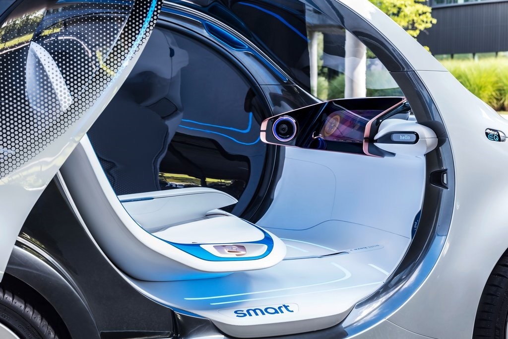 Pogled u unutrašnjost simpatičnog Smart Vision EQ fortwo i sledi ozbiljno iznenađenje: upadljivo je odsustvo klasičnih komandi koje poseduje svaki automobil. Ovo jasno ukazuje da se ovde radi o vozilu koje treba da poseduje tehnologiju autonomne vožnje. Svi do sada viđeni koncepti, pripremljeni u Daimler i Mercedes-Benz kuhinji, eksperimentisali su sa džojstik palicama i ostalim nekonvencionalnim vidovima upravljanja vozačkim funcijama. Ovo je prvi put da nam Daimler predočava svoju percepciju budućnosti, u smislu da autonomnim vozilima uopšte neće biti potrebne bilo kakve komande, nad kojima bi čovek imao moć, ali i prema kojima bi imao i odgovornost.