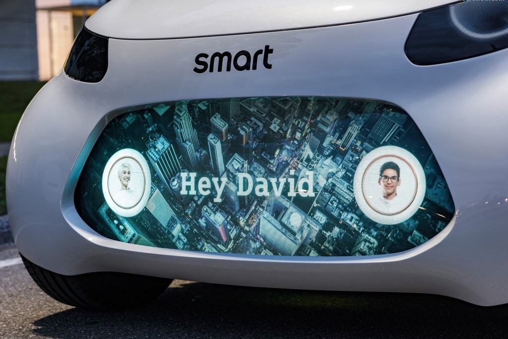 Smart se nada da među nama, kupcima, postoje i osobe koje bi se našle oduševljenim da, prilikom ulaska u svoje vozilo, na centralnom panelu ugledaju svoje ime, umesto displeja pretrpanog različitim podacima koje nam servira današnja koncepcija instrumentacije. Tradicionalni farovi su zamenjeni LED panelima koji mogu da proizvedu različite vizuelne efekte. Kada je Smart parkiran, deluje da nije bilo radikalnih izmena u sistemu svetlosne signalizacije, ali je jasno da vizuelni nastup ovog vozila budućnosti, može da bude izmenjen u skladu sa nahođenjem vlasnika, ili uslovljen drugim okolnostima. Suština je, neće biti konvencionalan, u svakom slučaju.