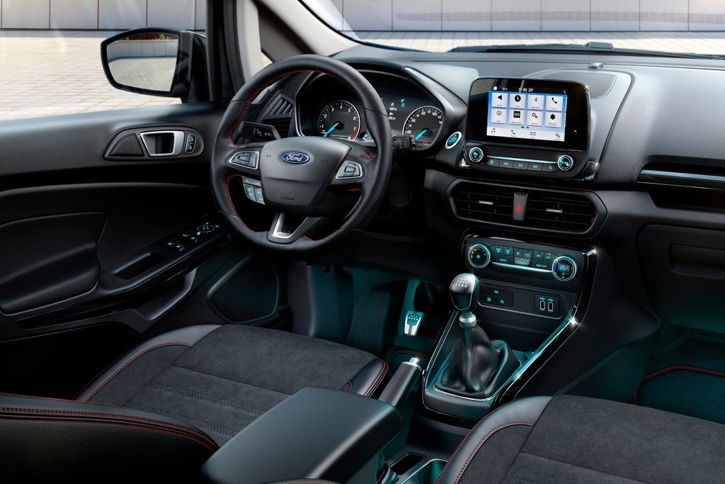 Restilizovani EcoSport dolazi sa širim rasponom tehnologije, uključujući i Sync3 info-zabavni sistem, tempomat, zadnju kameru, grejani obruč volana i Bang & Olufsen audio sistem. Ipak, zaostajaće u odnosu na novu Fiestu na polju tehnologije delimične autonomne vožnje, jer novajlija iz B segmenta poseduje automatizovani tempomat i automatsko kočenje u slučaju nužde.