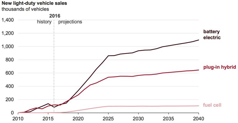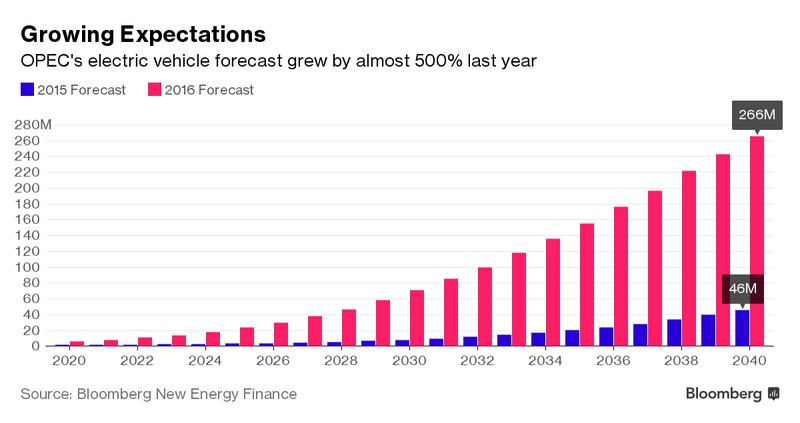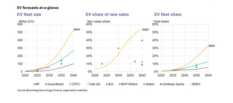 Najekstremniji u svojim prognozama je upravo Bloomberg New Energy Finance koji je recenzirao svoje prvobitno viđenje od 35% na čak 54% elektrifikovanih vozila do 2040. godine.