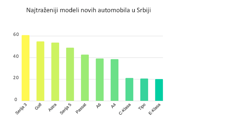 Situacija sa najtraženijim modelima još više naglašava naklonost naših kupaca ka nemačkim proizvođačima. BMW Serije 3 je vozilo koje najveći broj naših ispitanika želi, a odmah za njim dolaze Volkswagen Golf i Opel Astra. Jedini među deset najtraženijih koji nije nemačke proizvodnje je Fiat Tipo.