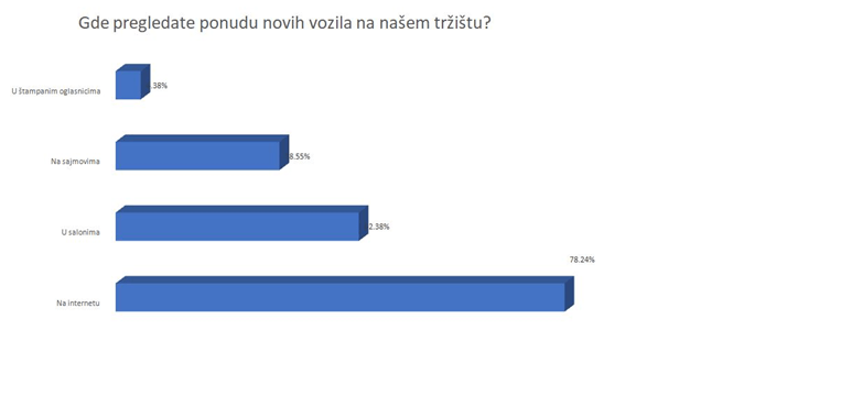 U doba opšte digitalizacije uopšte ne čudi činjenica da čak 78% naših ispitanika koristi internet za pretragu novih vozila u Srbiji.