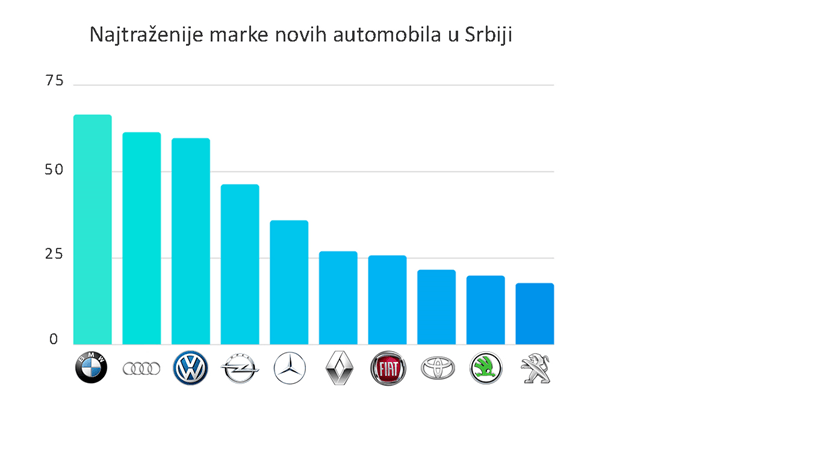 Kao što je i uvek bilo po nekoj ustaljenoj tradiciji, u Srbiji se najviše vole nemački automobili. Ubedljivo najpopularnija marka na našem istraživanju je bio BMW, a odmah za njim slede Audi i Volkswagen. Nešto niže su kotirani Opel i Mercedes-Benz.