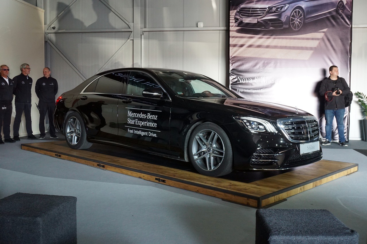 Jedini izloženi automobil koji nismo imali prilike da vozimo: S klasa. Suština ovog automobila zadire duboko u psihologiju. Ali, to važi za sve četvorotočkaše, skuplje od 100 hiljada evra. Specifičnost se ogleda u neverovatnoj količini prezentovanog delikatnog i rafiniranog luksuza koji obara sa nogu. Ukombinovan je sa najsavremenijim tehnologijama za čije razumevanje funkcionisanja zaista treba pohađati nedeljni trening program. Ovo svakako nije mesto za detaljnije razlaganje svih bezbedonosnih sistema, ali demonstracija funkcionisanja zaista ostavlja dubok utisak. Gledano sa poligona, a još i više u samoj vožnji, pored iskusnog instruktora, naučili smo da verujemo automobilu. Kada bi tim vozać/četvorotočkaš bili fudbaleri, S klasa bi glatko igrala na poziciji libera. Greške koji ljudski faktor nužno čini u vožnji, propuste koje za volanom pravimo, ovo čudo tehnologije pokriva na način na koji to čini najbolji drug za vas, pred lepšom polovinom.
