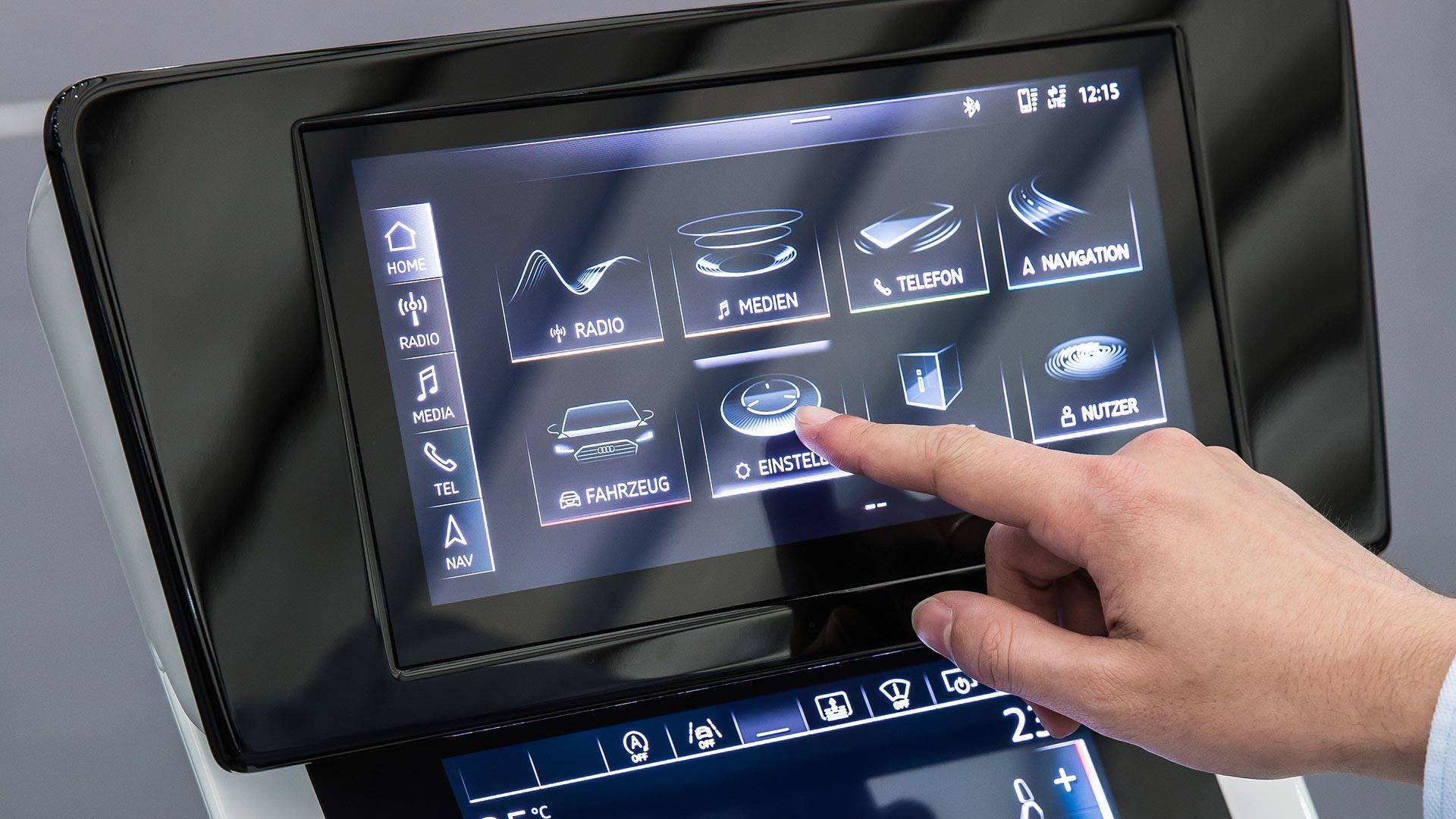 Isto tako, i info-zabavni sistemi su preneseni iz perjanice, što znači da je tu 12,3-inčni Virtual Cockpit klaster instrumentacije, poznat iz najnovijih modela iz Ingolštata. Na vrhu armaturne table se nalazi ekran osetljiv na dodir, dijagonale 10,1 inča – MMI Touch Response. Početni ekran, podeljen u više segmenata, ulaz je u mnoštvo podmenija za sve, od navigacije, preko muzike, do podešavanja samog vozila. Ispod njega, nalazi se 8,6-inčni ekran osetljiv na dodir, koji prvenstveno služi kao interfejs za kontrolu klima uređaja, ali se može pretvoriti u tastaturu za unošenje brojeva i adresa.