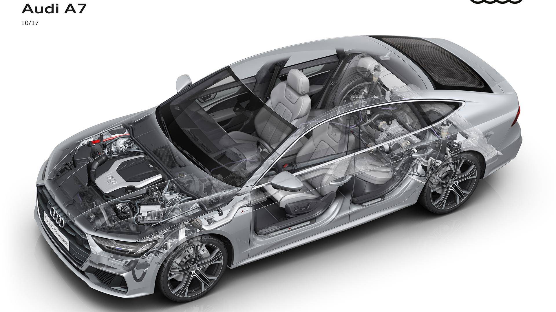 Kao i kod prethodnika, linija krova A7 je iskošena i spušta se prema nazad ka ispupčenom spojleru, koji se automatski podiže pri brzinama iznad 120 km/h.