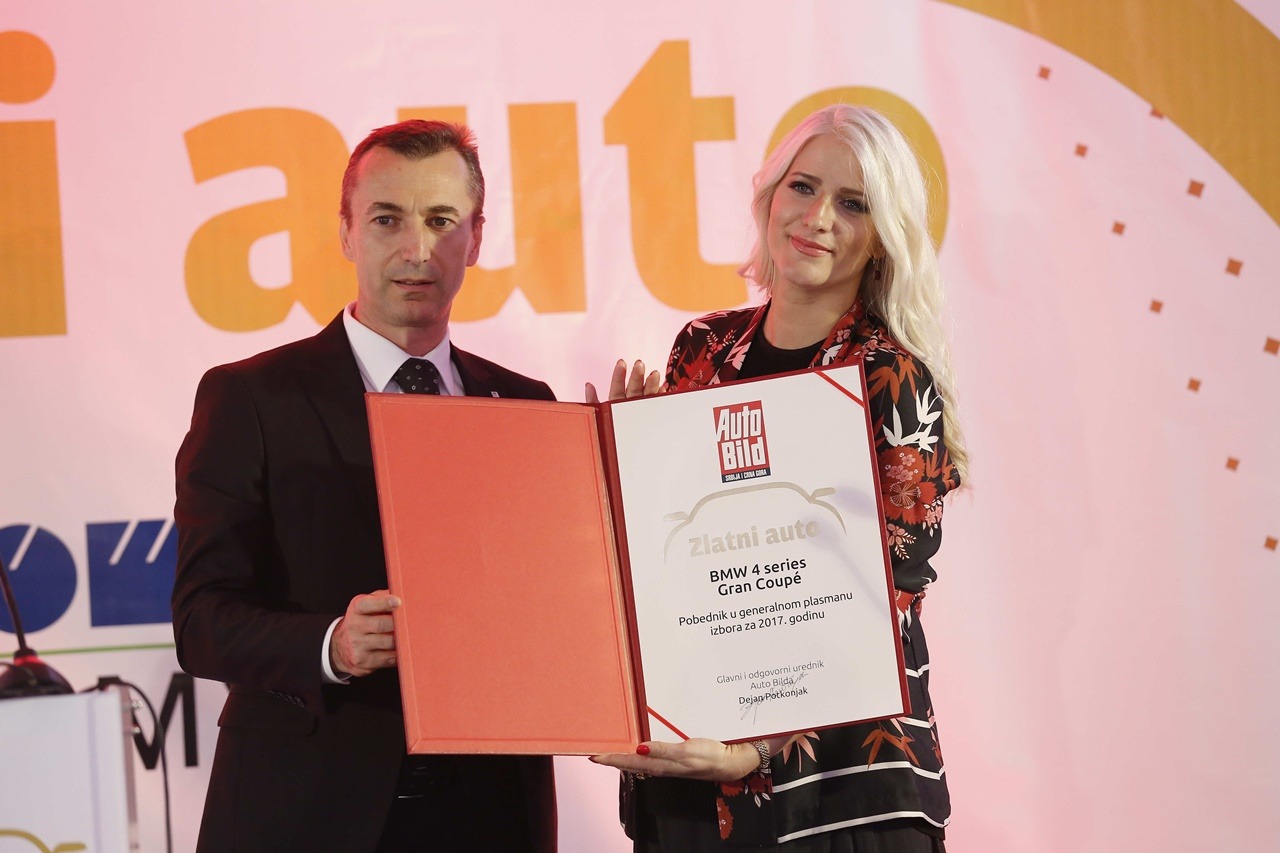 Na sinoć održanom izboru za “Zlatni auto 2017.” u organizaciji časopisa Auto Bild Srbija, za pobednika u generalnom plasmanu proglašen je BMW Serije 4 Gran Coupe. Plaketu „Zlatni Auto“ je, u ime kompanije Delta Motors, primila Aleksandra Đurđević, generalni direktor.