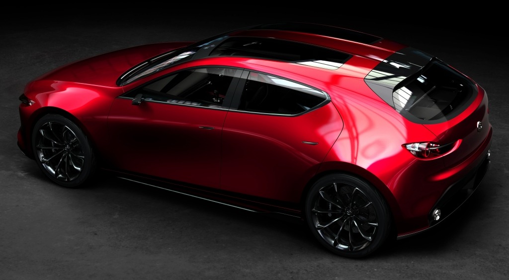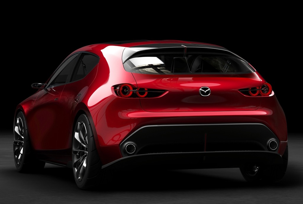 “Trojka“ je Mazdin najprodavaniji globalni model, a Kai koncept nam nagoveštava upravo kako bi sledeća trojka mogla da izgleda. Ona se očekuje u prodaji do 2019. godine, a kao i kod sadašnjeg modela kupac će moći da bira između heča sa petoro vrata i standardne limuzine. Po mnogim karakteristikama trojka je zadržala osobine prethodnika, posebno iz profila, ali tu je i dosta novih detalja. Posebnu pažnju privlači zadnji deo gde je osvetljenje inspirisao Ferrari GTC4 Lusso, a mnogi će reći da je Alfa Romeo 147 bio dizajnerska inspiracija. Prednji deo se nije izmenio u značajnoj meri, pa je tako tradicionalna maska hladnjaka ostala ista, a farovi veoma sličnim onima na većem CX-9 krosoveru. Iz Mazde kažu da su želeli da svaki detalj bude jednostavan, a u isto vreme i privlačan. Veće 20-inčne felne sigurno neće ugledati serijsku proizvodnju, a sličan dizajn bi mogao biti korišćen na performantnom modelu MazdaSpeed/MPS.