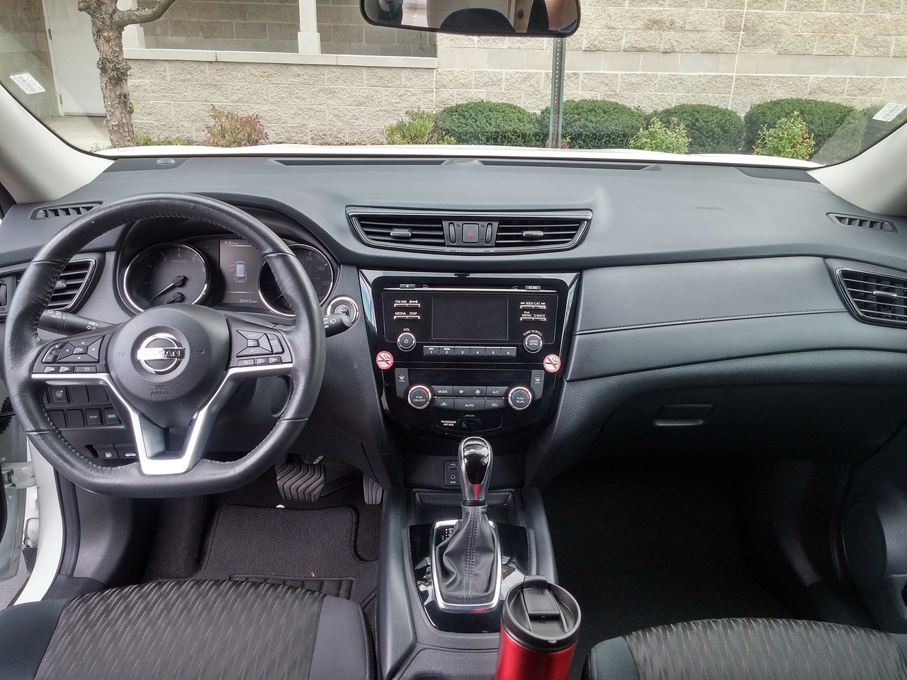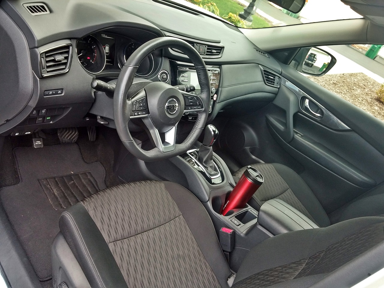 Sam enterijer je dobro organizovan, pa je tako sat za brzinu bez preterano mnogo detalja i dosta jednostavan za praćenje. Standardan monitor je od svega pet inča, što ga čini među najmanjim u klasi, ali i pored takvih dimenzija on je izuzetno dobro pozicioniran, lak za korišćenje i reaguje relativno brzo na komande. Za one koji žele više na višem SL nivou opreme se može dobiti i devetoinčni monitor. Od standardne opreme SV se može pohvaliti i sa kamerom za zadnji deo vozila, satelitskim radiom i Bluetooth, ali ostaje veliki žal što Google Car Play i Android Auto nisu ni među opcionom opremom. Nissan je nedavno predstavio takvu tehnologiju na skupljim modelima Murano i Maxima pa nema sumnje da će biti ponuđeni i na Rogueu.