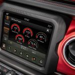 U skladu sa digitalnom erom u kojoj živimo, Wrangler je dobio tačskrin putem kojeg se kontroliše informativno-zabavni sistem, i u zavisnosti od verzije opreme dolaziće sa dijagonalom od 5,7 ili 8,4 inča. Wranglerov info-zabavni sistem podržava Apple CarPlay, Android Auto, može se koristiti kao WiFi hotspot, dok su u enterijer smeštena dva usb priključka i dve utičnice od 12 V.