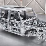 Da bi kvake i šarke na vratima tipične za G klasu bile zadržane, inženjeri su ih modifikovali tako da odgovaraju novom aluminijumskom dizajnu. A i B stubovi između vrata napravljeni su od čelika visoke izdržljivosti zbog svoje funkcije nošenja tereta. Međutim, manja masa ne znači manju stabilnost – naprotiv, povećana je vučna snaga okvira, karoserije i spojeva za oko 55 odsto, sa 6.537 na 10.162 Nm/deg. Pored poboljšanja prirodne dinamike vožnje i komfora, rezultat je i povećan kvalitet u smislu nivoa buke što znači da unutar vozila ima daleko manje buke i vibracija tokom vožnje.