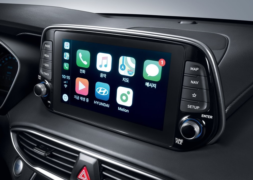 Iako specifikacije za tržišta regiona još uvek nisu pripremljene, sa akcentom na ustaljeno osiromašenje globalnih paketa opreme za modele namenjene srpskom kupcu (a zbog što niže početne cene), Hyundai obećava da će koristiti u standardnoj opremi TFT ekran dijagonale 5 inča, za AUX izlazom i Bluetooth opcijom konektivnosti. Veći, sedmoinčni ekran, biće upariv sa funkcijama Apple CarPlay i Android Auto, dok će se u ponudi naći još veći ekran osetljiv na dodir (8 inča), koji će ponuditi i integrisanu navigaciju, kao i kameru za pomoć u vožnji u nazad. Ova opcija je rezervisana za modele sa vrha ponude. Novi Santa Fe će ponuditi i prikaz svih važnih putnih informacija na vetrobranksom staklu, pored već standardnog mesta za prikaz ovih podataka na instumentacionom panelu. Biće omogućeno i bežično punjenje pametnih telefona.