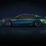 Gledajući iz profila, M8 Gran Coupe ima elegantnu liniju sa padajućom linijom krova, dok veliki točkovi daju sportsku notu bočnom izgledu. Pozadi, dominantnu ulogu ima zadnja svetlosna grupa koja je ostala slična rešenju kakvo smo videli kod prvog konceptualnog izdanja serije 8 iz prošle godine.