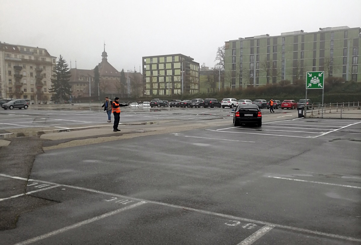 Parkinga ima sasvim dovoljno, nalaze se na otvorenom, a takođe postoje i oni zatvorenog tipa. Cena parkinga je 25 franaka za ceo dan. Kada ste parkirali svoje vozilo, ljubazni radnici vas upućuju do najbliže autobuske stanice, sa koje saobraćaju posebne linije, namenjene isključivo za vožnju do hale.