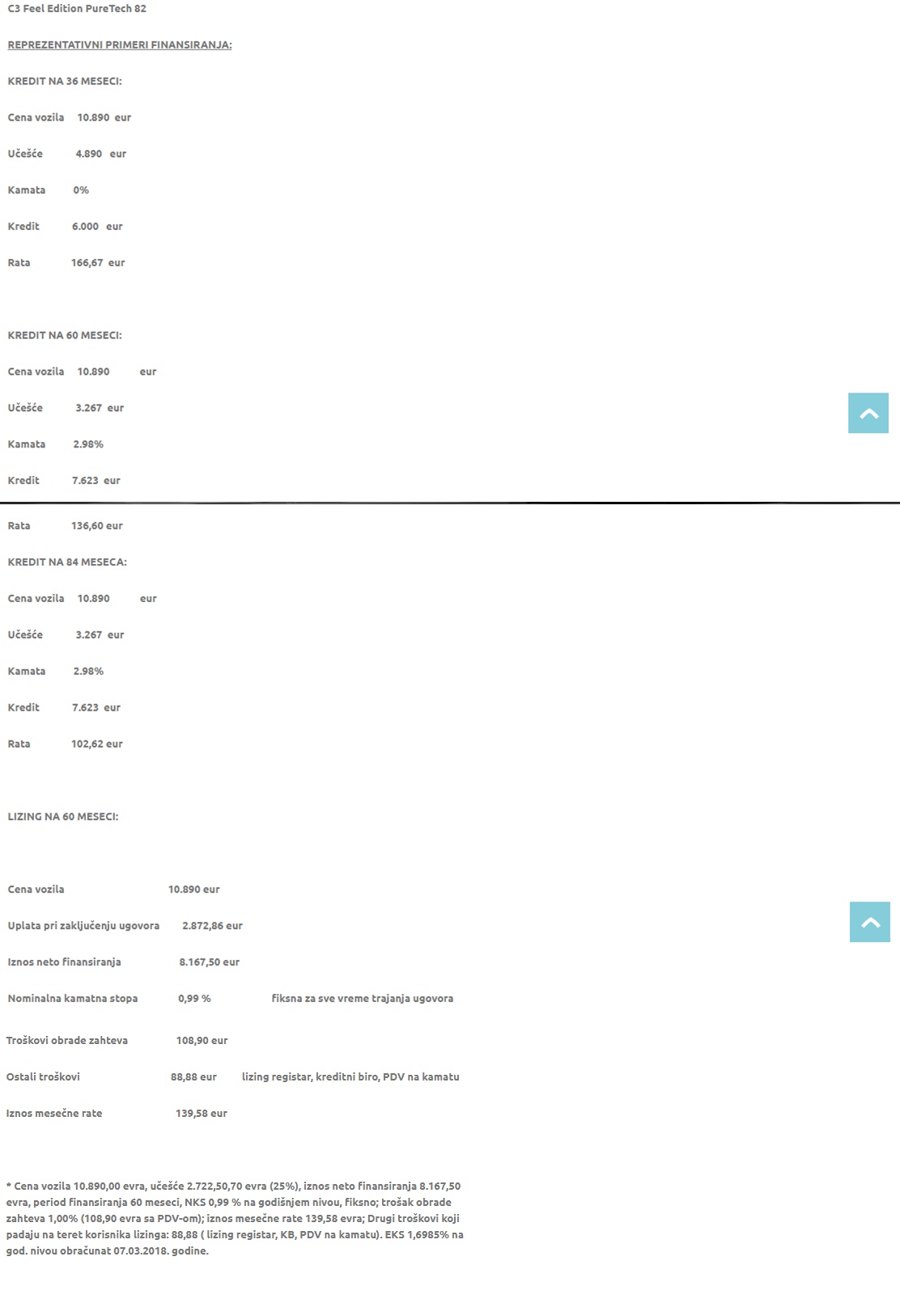 - Veoma često se, a nažalost u skladu sa zakonom, ističe nominalni trošak kamate, odnosno nominalna kamatna stopa koja predstavlja neku (među)obračunsku kategoriju. Kao takva, ona može, a s tim razlogom je i izmišljena, da kupca dovede u zabludu u pogledu isplativosti ponude. Kupca jedino i isključivo zanima efektivna kamatna stopa (koja obuhvata nominalnu kamatnu stopu uvećanu za sve prateće rashode zaduživanja – naknade, takse i slično). Nije redak slučaj da prava (efektivna) kamatna stopa bude veća i za 70% od (lažne) nominalne kamatne stope. Ilustracije prikazuju ponudu modela PSA grupe, ali je pojava mnogo češća.