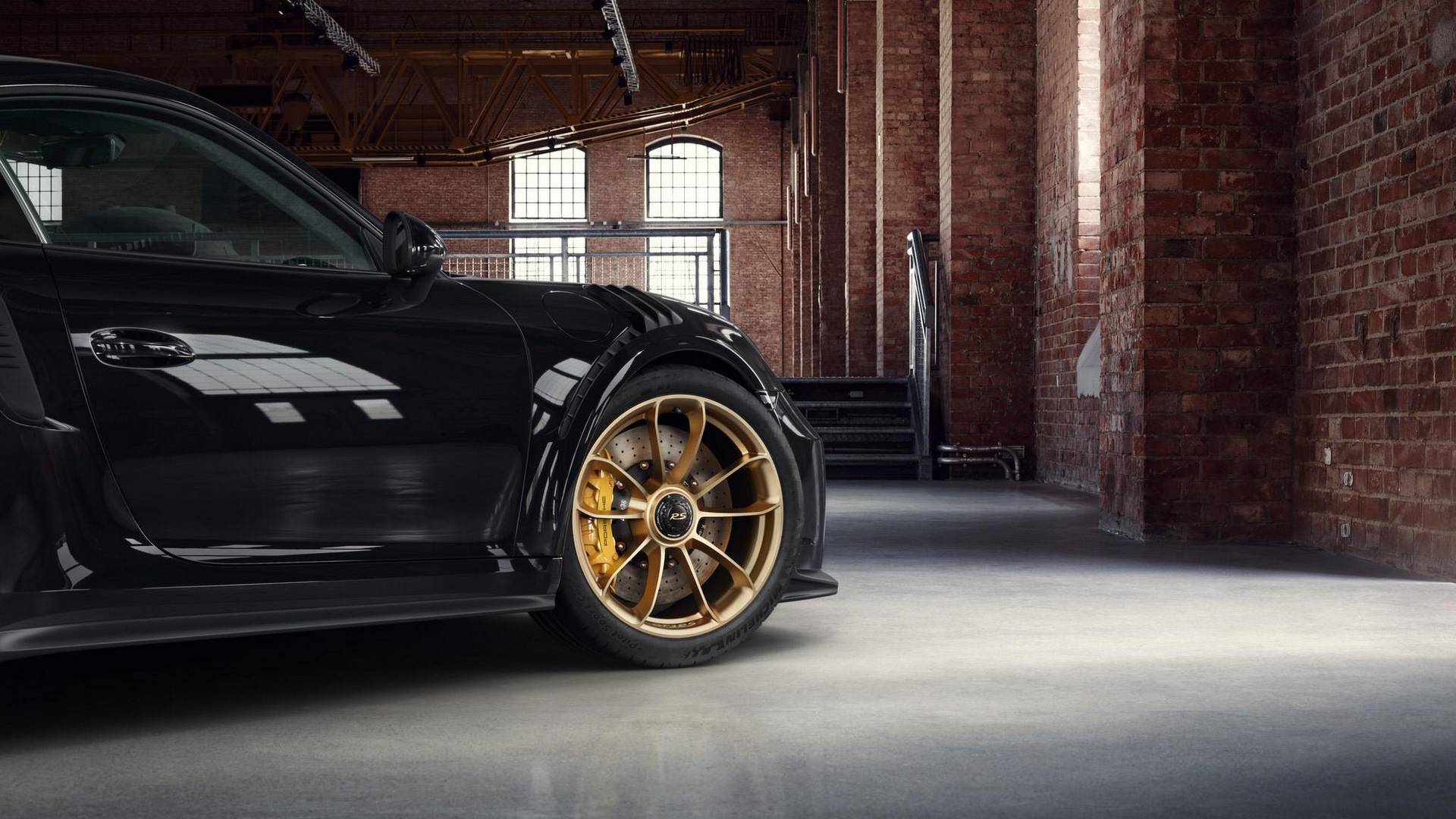 Crni finiš, koji akcenat stavlja na eleganciju, sjajno je uparen sa „zlatnom“ obućom, odnosno točkovima sa centralnim zavrtnjima sa GT3 RS oznakama i odgovarajućim, žutim kočionim čeljustima.