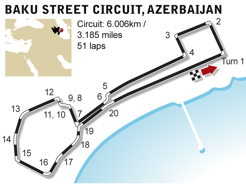 Staza je locirana u samom centru Bakua, kreće se jednim od glavih bulevara, koji vodi u stari grad, i nazad. Dugačka je 6.003 metra (vozi se 51 krug) samim tim je druga staza po dužini u kalendaru Formule 1. Od nje je samo duža staza Spa Francorchamps u Belgiji. Staza ima 20 krivina i ide u pravcu obrnutom od kazaljke na satu.