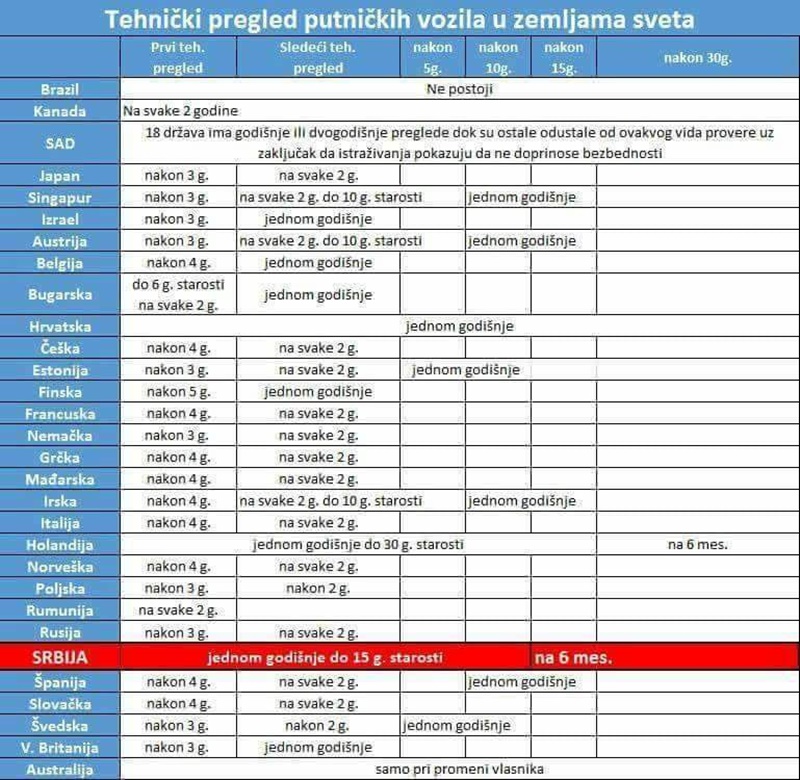Za početak, pogledajmo kako stvari u vezi sa tehničkim pregledima stoje u svetu u odnosu na nas:
