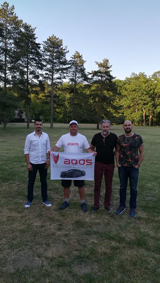 Na fotografiji ispod se nalazi Ivan Mladenović sa prijateljima iz kompanije Aqos Technologies, Beograd.