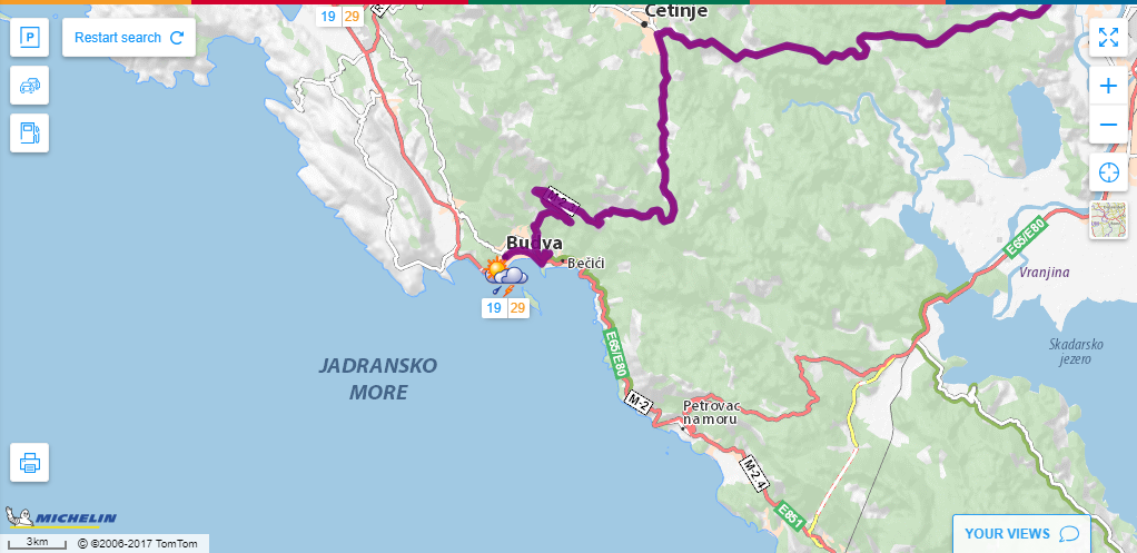 I na kraju, evo nas u Budvi. Naravno, Via Michelin vam pomaže da se informišete o vremenu.