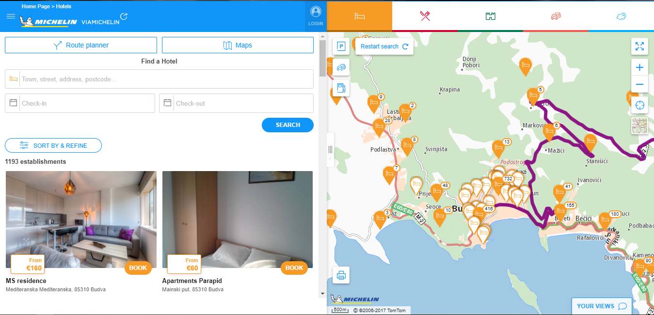 Čak i da ste u Budvu krenuli „naslepo“, Michelin vam pomaže da pronađete smeštaj, brzo i efikasno.