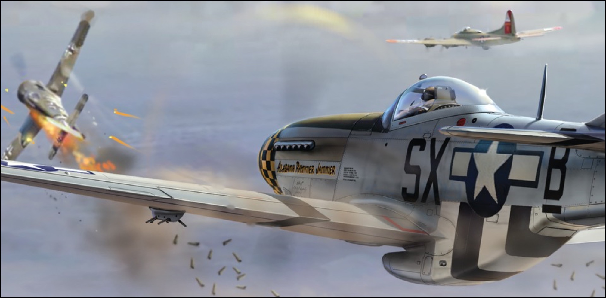 Iako su Amerikanci pre Drugog svetskog rata bili ubeđeni da teškim bombarderima koji su dobro naoružani nije potrebna pratnja, taj stav se promenio kada im je RAF (Royal Air Force) dokazao suprotno, jer su nemački avioni takođe bili vrlo efikasni i dobro naoružani. Tada se u osvajanje Evrope iz vazduha krenula masovnom pratnjom P51, kada se tok rata iznad tla drastično menja. Sa njegovom pojavom, gubici američke avijacije padaju na svega 2%. Čak i brzi razvoj nemačkih mlaznjaka ME262 nije uspeo da promeni tok rata.