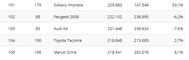 Prvih deset su zaokružili Chevrolet Silverado i VW Polo.