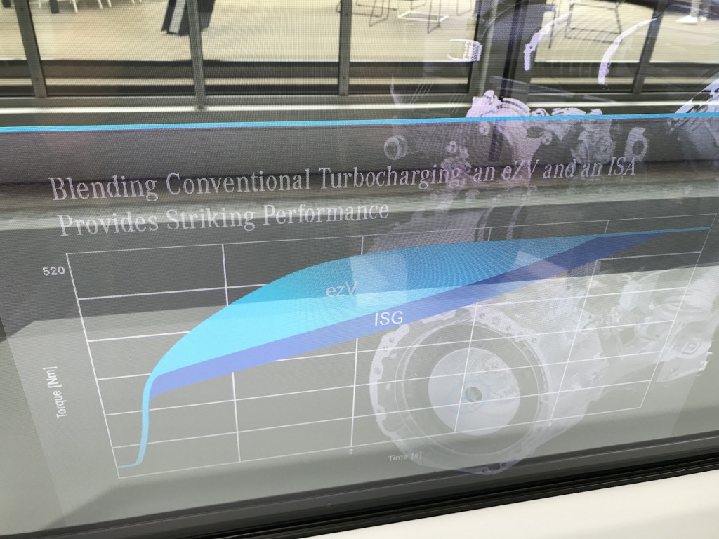 S500 oznaka je ranije bila rezervisana za V8 motore u Mercedesovoj nomenklaturi, ali sada iza nje stoji redni šestocilindraš. Naravno, razlog je što je količina snage koju ovaj agregat isporučuje ravna jednom V8. Sistem ima tri faze pojačavanja snage. Najpre, u kratkom periodu prilikom startovanja iz stanja mirovanja, ISA obezbeđuje do 21 ks i 250 Nm dodatne inicijalne pogonske snage. Zatim radi u sinergiji sa električnim kompresorom, koji isporučuje dodatnu snagu tokom prve četiri sekunde ubrzanja, dok najveći deo posla obavlja u prve dve sekunde.