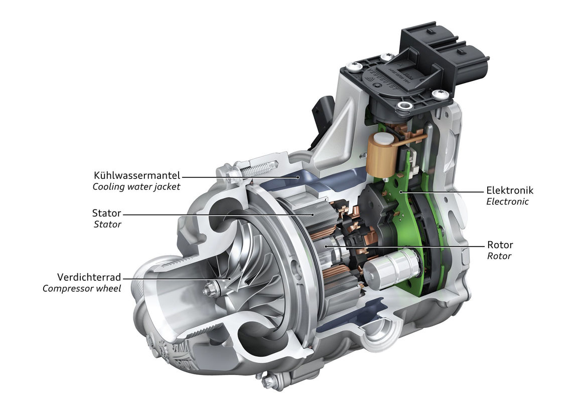 Audijev novi sistem u potpunosti neutrališe „turbo rupu“ i u velikoj meri poboljšava performanse pri niskim obrtajima. Ono što je od suštinskog značaja je da je jednostavniji i efikasniji od twin-turbo i tri-turbo postavki koje koristi BMW. Audijev električni kompresor počiva u usisnom sistemu, „nizvodno“ od konvencionalnog turba i međuhladnjaka i većinu vremena nije operativan. Međutim, pri veoma niskim obrtajima motora, posebno iz stanja mirovanja, vazduh kojeg puni glavni turbo se preusmerava kroz električnu jedinicu, koja se već vrti pri visokim obrtajima (jer je napaja elektromotor, koji energiju dobija iz baterije od 48 V), tako da se on šalje mnogo većom silom u agregat.