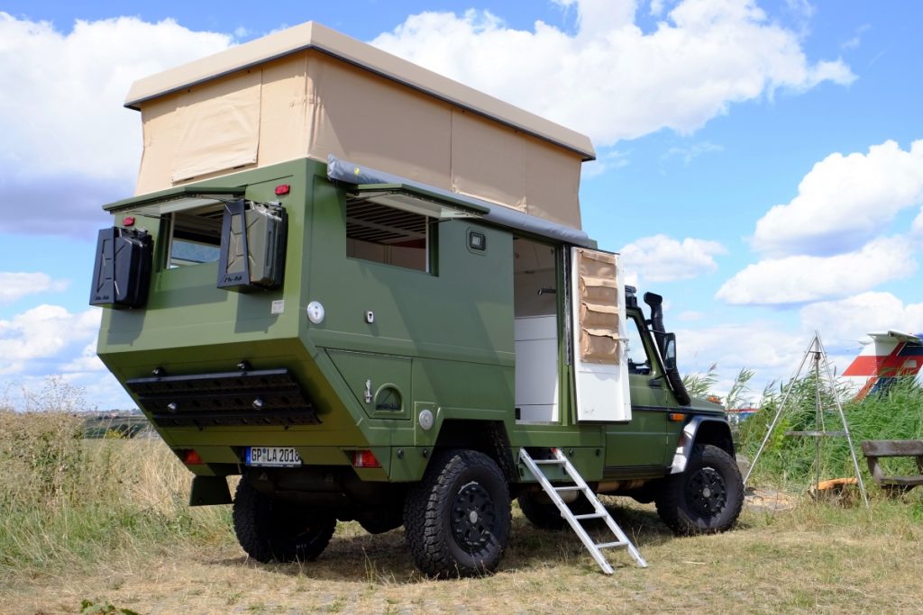 Konkretan primerak je ofarban u, svima nama poznatu maslinasto zelenu boju. Pokreća ga dizel motor zapremine 2,9 litara. Najzanimljiviji deo ove G klase jeste to što je on samo temelj za ultra modernu kuću na točkovima. Izrađena je od dvoslojne stakloplastike uz upotrebu poliuretanskog filtera. Materijal poseduje nisku specifičnu težinu, a karakteriše ga visoka snaga, oidnosno krutost i otpornost, bez uticaja na toplotnu izolaciju.