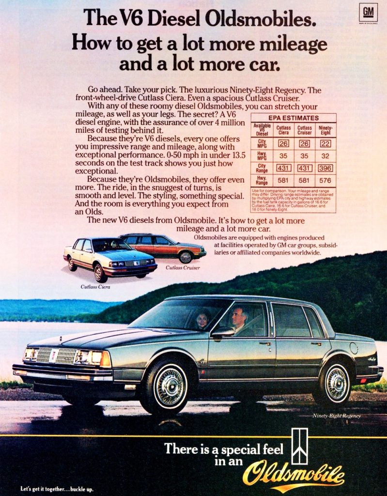 General Motorsova divizija Oldsmobile je bila prva američka kompanija koja je ponudila dizel motor. To se desilo iste godine kada je stigao i pomenuti 300SD, ali za razliku od Nemaca – Amerikanci se nisu potrudili da pravilno razviju takvu tehnologiju već su samo preradili benzinski V8 motor zapremine 350 kubnih inča (5,7 litara).