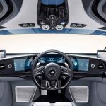 Hiperautomobil iz britanske radionice je trosed. Vozačeva pozicija je u sredini, dok se suvozači nalaze blago nazad, sa leve i desne strane. U skladu sa tehnološkim trendovima, kabina je bogata raznim ekranima. Dva displeja rezervisana su za prenos sa kamera-retrovizora, dok su tri ekrana postavljena ispred vozača, od kojih centralni predstavlja digitalnu instrumentalnu tablu.