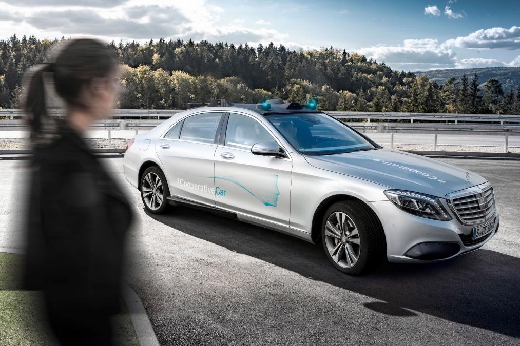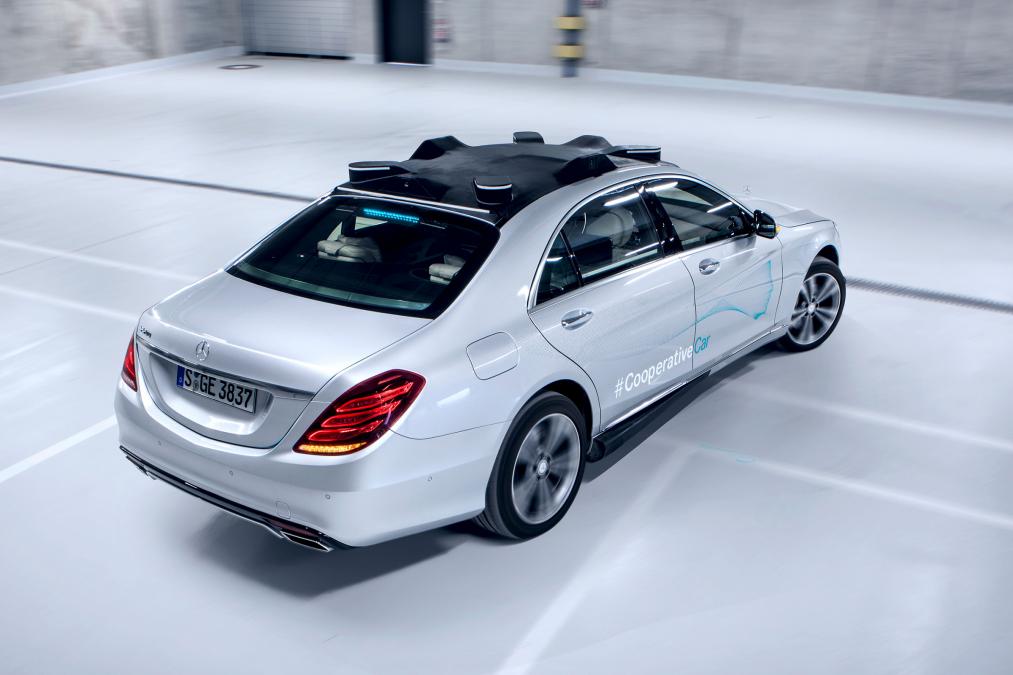 Automobili poput ove S klase, trenutno se koriste za potrebe istraživanja u centru za automatizovano parkiranje u Štutgartu, koje sprovode Daimler i Bosch, ali je “Kooperativni automobil” još napredniji sa nekoliko dodataka koji omogućavaju komunikaciju na relaciji vozilo – pešak.