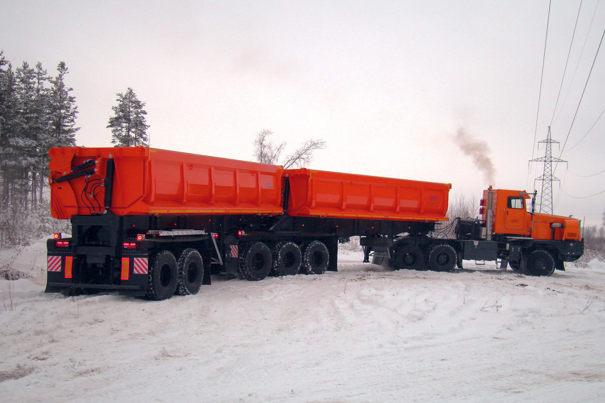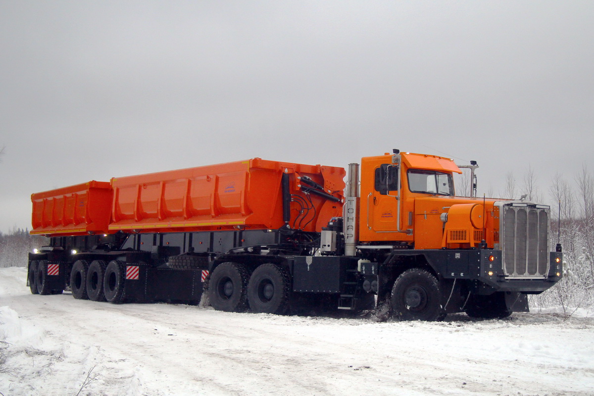 “Lokomotiva” kompozicije, odnosno sam kamion nosi naziv TONAR-7502 6×6, što će reći da su sve tri osovine pogonske. Njegova dužina iznosi devet metara, dok je visina čak četiri metra. Poklopac motora krije Cumminsovu QSK dizel jedinicu zapremine 19 litara koja isporučuje 760 konjskih snaga. Kamion koristi automatsku transmisiju.