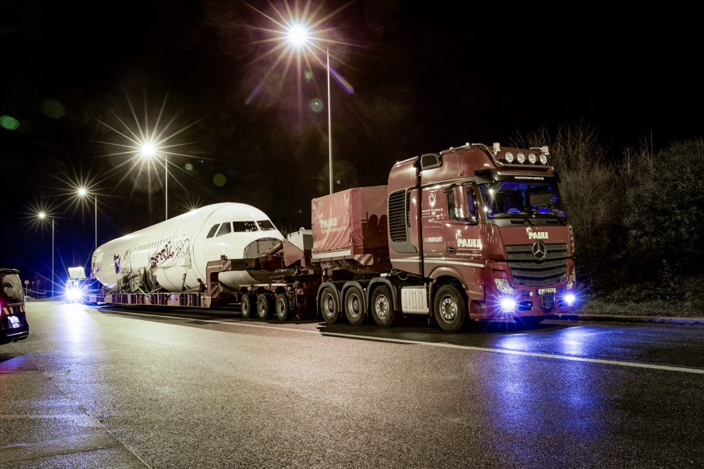 Trup aviona Airbus A 320 koji je oštećen prilkom sletanja na pistu aerodroma u glavnom gradu Estonije, Talinu je morskim putem transportovan do nemačke luke Libek, na Baltičkom moru, a potom drumovima, u južnu Nemačku. Za organizaciju kopnenog dela zahtevnog zadatka je angažovana transportna kompanija iz Štutgarta. Zato i ne čudi što je za potrebe izvođenja kompleksne misije prevoznik iz Štutgarta uposlio svog “sugrađanina”, kamion Mercedes-Benz Actros 4163 SLT, čiji motor isporučuje oko 630 konjskih snaga.
