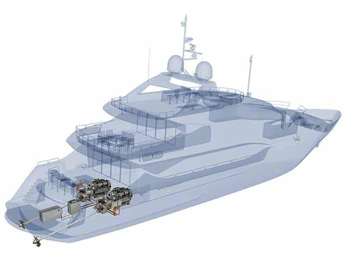 Svaki od dva dizel motora, u konfiguraciji od 12 cilindara, isporučuje po 1.947 konjskih snaga (1.432 kW), odnosno u zbiru oko 4.000 “konja”. Po želji kapetana jahte, u bilo kom trenutku je moguće iz funkcije isključiti oba dizel motora, a istovremeno koristiti samo snagu elektromotora, kako bi se plovidba nastavila. Kada se bude pojavila na tržištu, tokom 2020. godine, jahtu će biti moguće naručiti u različitim nivoima izlazne snage motora sa unutrašnjim sagorevanjem, kako je najavio Rolls-Royce.