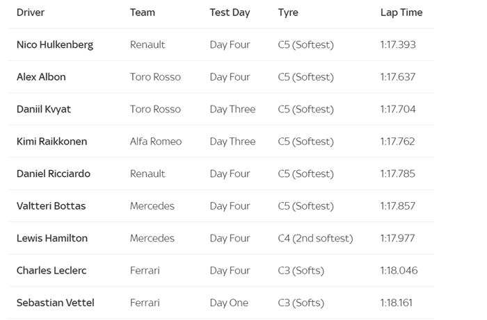 Danas je bio poslednji dan prvog dela predsezonskog testiranja u Barseloni. Kako se i očekivalo, bilo je dosta uzbuđenja na stazi, Renault je završio kao najbrži, dok je Leklerk u Ferrariju odvezao najviše krugova.