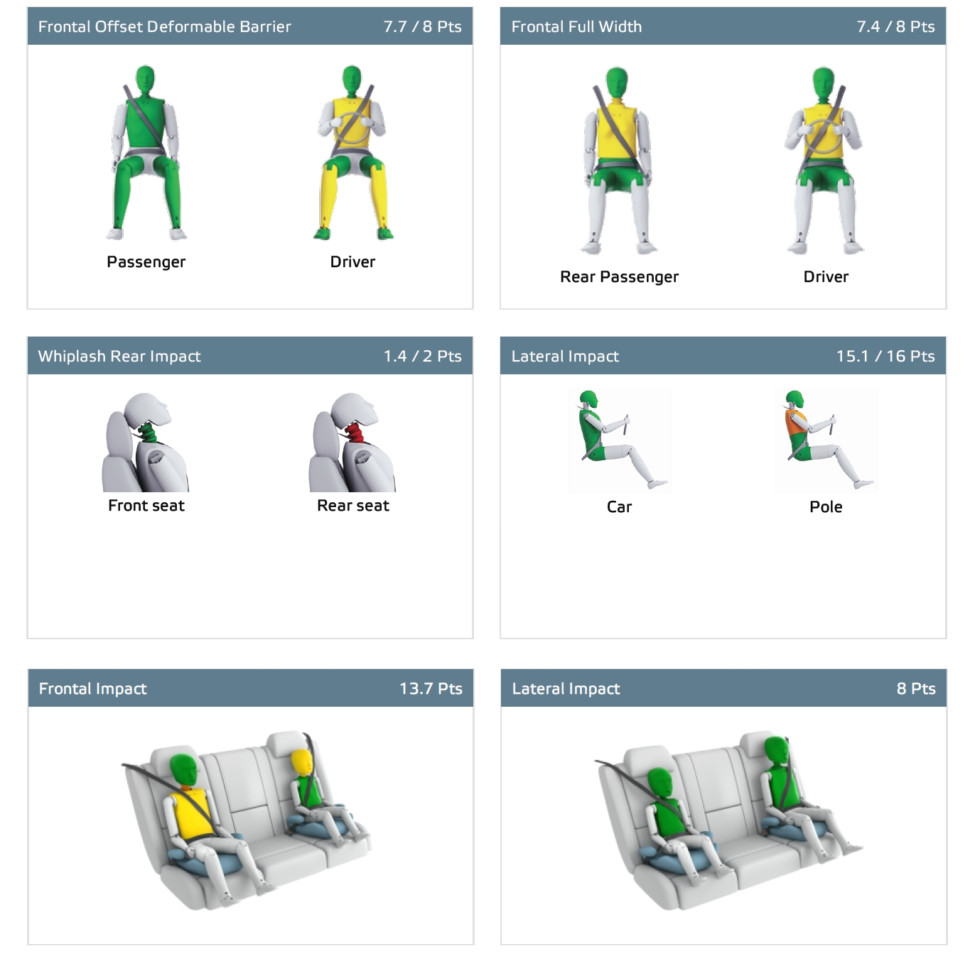 SEAT Tarraco je sve testove sudara prošao sa „dobar“ ili „odličan“, ali je geometrija zadnjih naslona za glavu dobila narandžasti nivo opasnosti.